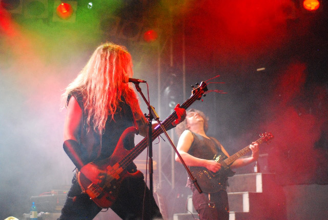 Bereits die Vorband OBSCURITY sah sich mit einer fast leeren Location konfrontiert und konnte bis auf wenige Hartgesottene so recht niemanden überzeugen, mit ihnen in die Schlacht zu ziehen. Dabei gab sich das Quintett wirklich alle Mühe, mit ihrem Pagan-Death-Black-Metal willige Mitkämpfer zu rekrutieren. Die Krieger aus dem Bergischen Land präsentierten neben einigen Tracks ihrer „Schlachten und Legenden“-Scheibe bereits diverse Songs ihrer im März erscheinenden CD „Várar“. Leider blieb es trotz 'Battle Metal' oder 'Blut und Feuer' doch recht kühl in der K17-Halle. An einer der Gitarren präsentierte sich übrigens - so man seinen Augen trauen konnte - „Bony“ Hoff, seines Zeichens Sänger der JAPANISCHEN KAMPFHÖRSPIELE.