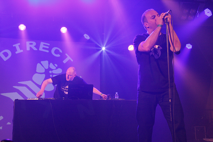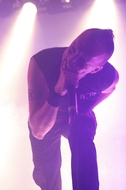 Amphi Festival 2011Samstag mittag, 12 Uhr - es geht los. Und zwar mit [X]-RX. Das auf der Bühne als Duo agierende Projekt des Kölners Pascal Beniesch hat sich schwer technoiden Industrial-Klängen verschrieben und so bezeichnet man den Sound selber als "Industrial Rave". Mit Kunstblut beschmiert und mit feschen Frisuren fegen Pascal und sein Mitstreiter über die Bühne und brüllen ihre Texte ins Publikum, das im Falle der Neonbunten schnell mit der körperlichen Ertüchtigung anfängt. Zwischendurch geht es immer mal wieder an den Techniktisch, um ein bisschen an den Sounds zu drehen. Sieben Songs geben die beiden Jungs zum Besten, das aber ausgerechnet der größte Hit "Die Sexualkiste der Hölle" außen vor bleibt, verwundert doch ein wenig. Solide Eröffnung ohne größeren Überraschungseffekt.