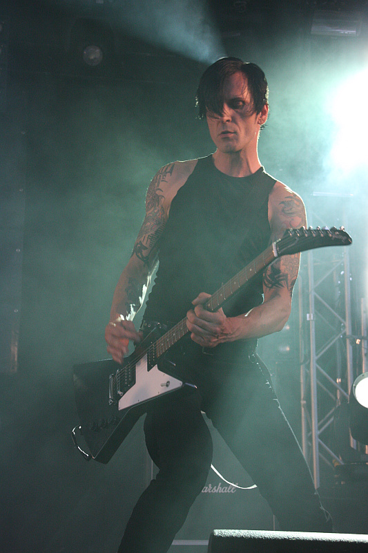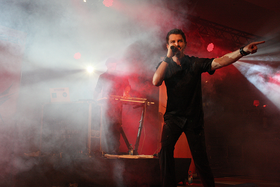 Zurück zur Hauptbühne, auf der MELOTRON sich ein Stelldichein geben. Um die Synthiepopper war es zuletzt recht ruhig, das letzte Album "Propaganda" liegt immerhin schon vier Jahre zurück, trotzdem ist es vor der Bühne gut gefüllt. Amphi Festival 2011Leider ist der Sound deutlich zu gesangslastig und da Sänger Andy Krüger anscheinend auch nicht seinen allerbesten Tag erwischt hat und nicht alle Töne genau trifft, will der Funke nicht so recht überspringen. Zwar spornt der Frontmann mit der Glitzerschminke um die Augen das Publikum immer wieder an, insgesamt ist der Auftritt aber eine leichte Enttäuschung, woran auch die Hits "Das Herz", "Vaterland", "Menschenfresser" und das abschließende "Brüder" nicht viel ändern können.