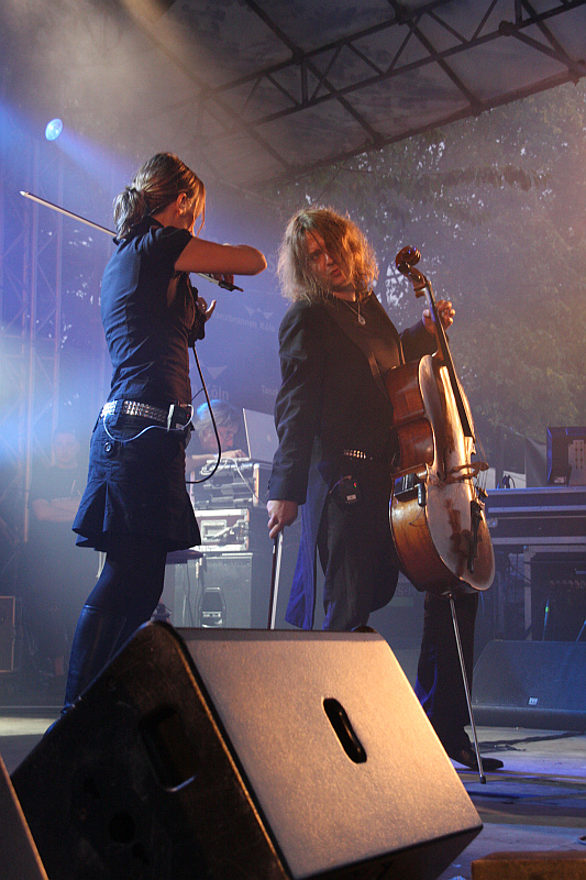 Inzwischen wurde ein riesiger Flügel auf die Bühne gebracht, an dem Ernst Horn Platz nimmt, neben sich ein paar analoge Synthesizer, hinter sich moderneres Equipment. Ebenfalls mit auf der Bühne stehen Geigerin Yvonne "Ivee Leon" Fechner, die Background Vocals beisteuert sowie Cellist Tobias "B. Deutung" Unterberg, die beide rege miteinander interagieren. Das Hauptaugenmerk liegt jedoch, wie nicht anders zu erwarten, Amphi Festival 2011auf dem charismatischen Sänger Alexander Veljanov, der wegen einer Erkältung einen dicken Schal trägt. Seine stimmliche Leistung ist dadurch aber zum Glück nicht beeinträchtigt und auch seine tolle Gestik und Mimik kommen voll zur Geltung. Aufgrund des Regens stehen die Zuschauer dichtgedrängt unter den schützenden Pilzen, die den Platz überspannen und lauschen der Musik eher andächtig, als dass sie ausgelassen feiern. Die Setlist beinhaltet Songs aus allen Phasen der Band und besonders die Darbietungen von "Return" und "Reincarnation" sind ganz großes Gänsehautkino. Zur großen Freude des Schreibers wird im Zugabenblock sogar "Fighting The Green" gespielt, hier merkt man Veljanov die gesundheitliche Beeinträchigung aber ein bisschen an. Zum Abschluss darf natürlich "Love Me To The End" nicht fehlen, da man aber den strikten Curfew von 22 Uhr damit überschreitet, wird die Lautstärke pünktlich heruntergefahren. Ein etwas unwürdiges Ende eines trotzdem sehr sehr schönen Auftritts, nach dem es in viel zu dünner Bekleidung im strömenden Regen zum Bahnhof geht, während im Staatenhaus HOCICO noch zugange sind.
