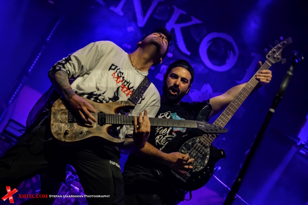 Chris Hermsdörfer und taucht etwas später wieder auf der kleinen Nebenbühne im Publikum auf. Der folgende Akustik-Part gelingt mit „Wide Awake“, „Human / Out Of The Ashes“ und „I Remember Dying“ perfekt, auf der Hauptbühne sind währenddessen Doubles der beiden zu bewundern, da sich hier Tobias Lodes und John Scheffers, in Perücke und Kleid gewandet, einen netten Scherz erlauben.