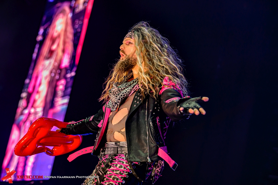 Die beiden Pole-Dance-Stangen werden in der Folge von zwei Tänzerinnen in Beschlag genommen, die während der Show für zusätzliche Hingucker sorgen. Dann aber sind sie da: BAD LOVERZ, quasi direkt vom Sunset-Strip auf die Bühne der Arena – doch halt – mit Dudelsack und Drehleier? Auf der Bühne stehen hier in perfekt-kitschigem Glamrock-Outfit SALTATIO MORTIS, die es sich nicht haben nehmen lassen, das ESCALATION-Fest mit einer Hommage an die große Zeit der Rockmusik zu beehren. Alea glänzt in hautenger Lederhose, die durch quitschpinke Schnüre zusammengehalten wird mit perfekten Posings, die Jon Bon Jovi Anno 1985 nicht besser hätte hinbekommen. Der ROXETTE-Klassiker „The Look“ ist der Auftakt zu einem wilden Ritt zurück in die wohl prägenste Zeit der Musikgeschichte, in der Millionenseller im Wochentakt veröffentlicht wurden. Dass die Halle hier mächtig