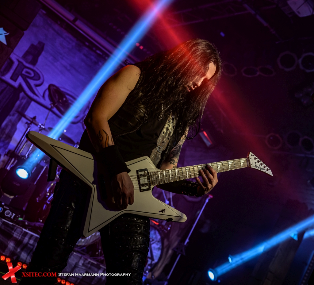 Nach kurzem Umbau geht es weiter mit FIREWIND, die an diesem Abend in der Besetzung Herbie Langhans (Gesang), Gus G (Gitarre), Petros Christodoylidis (Bass) und Johan Nunez (Schlagzeug) zu Werke gehen. Und FIREWIND zielen direkt in die Vollen: FIREWIND | MATRIX BOCHUM | 2024-03-01Mit „Salvation Day“ vom neuen Album „Stand United“, das an diesem Tag veröffentlicht wurde, geben FIREWIND die Richtung vor, in die sich der Abend entwickeln sollte. Neben dem bestens aufgelegten Gitarren-Gott Gus G, der bekanntlich schon für OZZY OSBOURNE und ARCH ENEMY in die Saiten gegriffen hat, brilliert Herbie Langhans (AVANTASIA, VOODOO CIRCLE, SINBREED) souverän auch in den schwierigsten Passagen der mit Highnotes gespickten Gesangslinien, die den Unterschied zwischen „normal“ und „fantastisch“ glasklar markieren. Weiter geht’s mit „Destiny Is Calling“, ebenfalls vom neuen Album, ein echter Ohrwurm, der mit einem grandiosen Gus G-Riff beginnt und in einen mächtigen Chorus mündet, den man so schnell nicht mehr aus dem Kopf bekommt. Im Mittelteil folgt dann ein Solo der Marke Gus G, in dem der Magier alle Register seines Könnens zieht. Ein echtes Brett. FIREWIND | MATRIX BOCHUM | 2024-03-01„I Am The Anger“ vom 2003er Output „Burning Earth“ schlägt gekonnt den Bogen zu bewährtem Material, „Wars Of Ages“ vom 2017er Album „Immortals“ entfacht im Publikum wahre Begeisterungsstürme, Power-Metal im besten Wortsinn, an dem man sich einfach nicht satt hören kann. Mit „The Fire And The Fury“ geht es im Anschluss Schlag auf Schlag weiter, bevor im Mittelteil des Sets mit „Longing To Know You“ eine mächtige Power-Ballde ansteht, die in Sachen Geschwindigkeit ein paar Gänge zurückschaltet, in Bezug auf Gänsehautmomente allerdings nichts zu wünschen übriglässt. Mit „Mercenary Man“ ziehen FIREWIND das Tempo danach wieder deutlich an, „Chains“ und „Stand United“ im Anschluss reihen sich perfekt in die Hits der Band ein und machen deutlich, dass die Jungs nichts von ihrem Hitpotential eingebüßt haben.