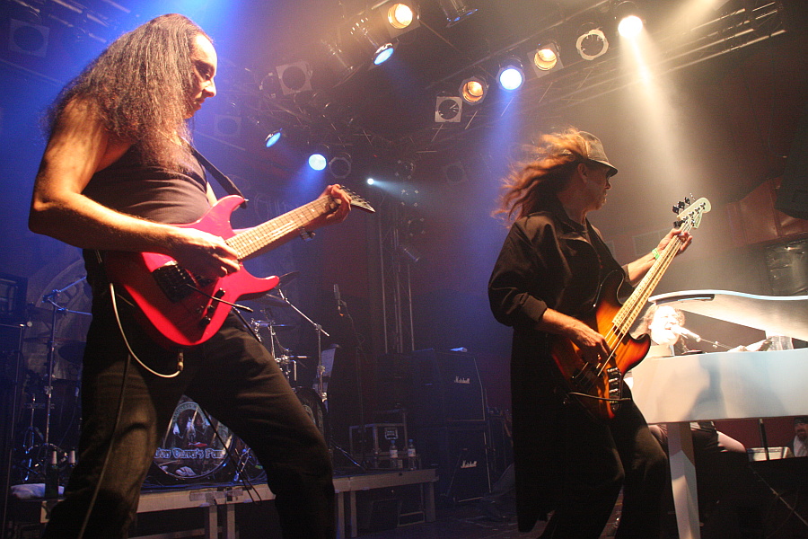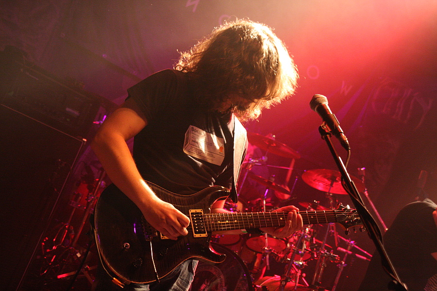 Musikalisch wird nicht sonderlich harter, aber umso spannenderer, sehr atmosphärischer Progressive Rock geboten, bei dem nicht nur die spielerische Darbietung überzeugen kann, sondern auch das Material selber. Selbst wenn man die Band noch nie gehört hat, kann man sich schnell von ihr mitreißen lassen und so fängt man langsam an, den Abend auch zu genießen. Besonders gelungen sind die immer wieder einfließenden folkloristischen Elemente, die ein sehr mediterranes Flair haben und so dafür sorgen, dass man KINGCROW auch als überaus eigenständige Band im Gedächtnis behält. Optischer Blickfang auf der Bühne sind Gitarrist Diego Carfolla und Sänger Diego Marchesi, die mit viel Bewegung bei der Sache sind, Geschmack beweist der Sänger darüberhinaus mit seinem T-Shirt, dessen Motiv sich am Plattencover von JOY DIVISIONs "Unknown Pleasures" orientiert. Letztlich eine überaus gelungene Darbietung einer höchst interessanten Band, deren Name man sich als Liebhaber von kühlem Progrock unbedingt merken sollte.