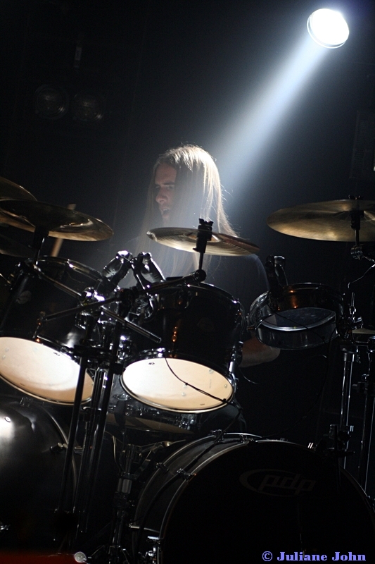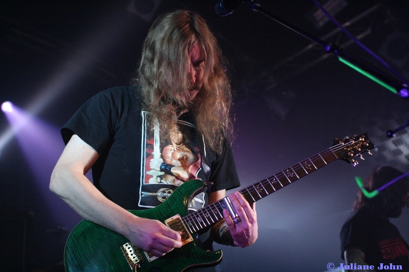 Ein nicht geringer Teil des Publikums ist sicherlich auch wegen CYNIC in die Markthalle gepilgert. In zwanzig Jahren Bandgeschichte hat es diese Band auf gerade mal zwei Studioalben gebracht, wobei Album Nummer zwei erst anno 2008 nach der von vielen herbeigesehnten Reunion der Florida-Jungs erschien. Trotz mangelnder Produktivität haben CYNIC einen legendären Status in der Szene erlangt, auch wenn ihr aktuelles Werk „Traced In Air“ den Death-Metal-Wurzeln ein wenig den Rücken zugekehrt hat. Rhythmisch komplex und mit krummen Takten vor wunderschönen Melodien strotzend, ergießt sich der Sound dieser vier Wundermänner ins Publikum, während sich Paul Masvidals fremdartiger, verfremdeter Klargesang, begleitet von heiseren Growls, wie Balsam über das polyrhythmische Brodeln der Instrumente legt. Ein wunderbarer Auftritt einer wunderbaren Band!