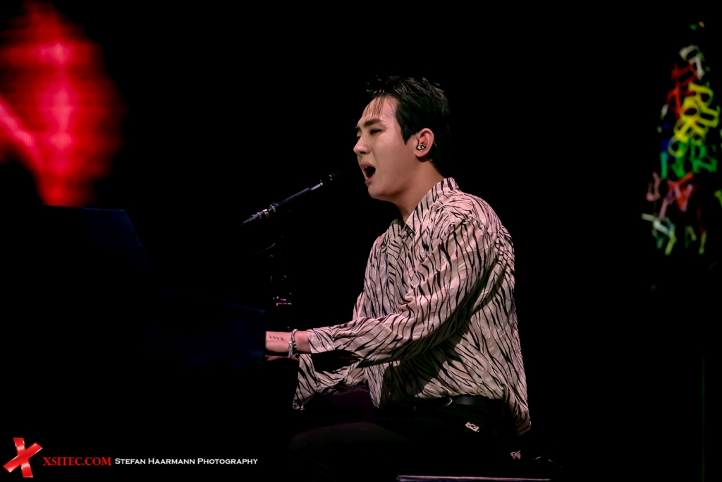 Die bereits angesprochenen Lightsticks, die bei „Red“ das Palladium bereits kollektiv in rotes Licht getaucht hatten, werden nun in allen Farben geschwenkt, ein Effekt, der dieser Show eine Einzigartigkeit verleiht, die man so nicht bei vielen Events zu sehen bekommt. Die Party steigert sich mit „Yes“ und „I.L.Y.“ über „Time“ stetig weiter, bevor mit „Beauty And The Beast“ eines der absoluten Highlights ansteht, das in der Halle entsprechend gefeiert wird.