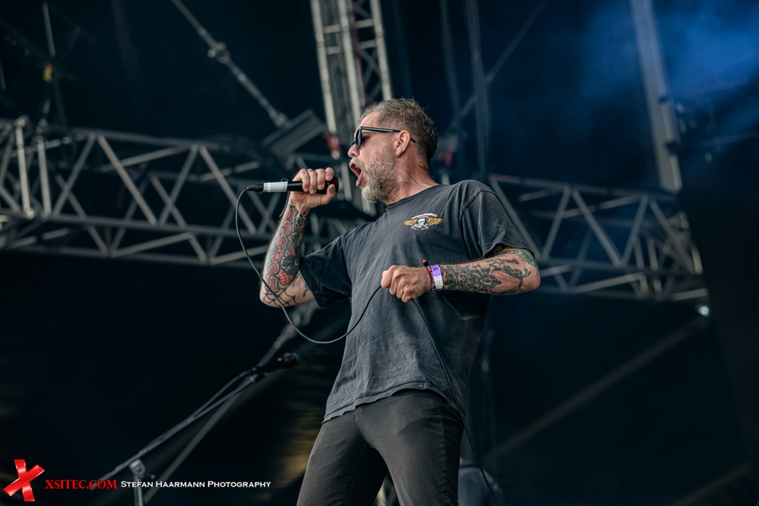 aus Kiel machen um Punkt 12:00 Uhr mittags klar, warum sie hier Kultstatus genießen: Hardcore-Punk, Stoner- und Noise-Schlacke, zwei kehlige Frontmänner, null Nostalgie-Verklärung. Es klingt, als würde GG Allin im Proberaum von Saint Vitus randalieren – nur tighter. Der Auftritt knarzt live so griffig wie auf Tonträgerklassikern à la „Colossus“.