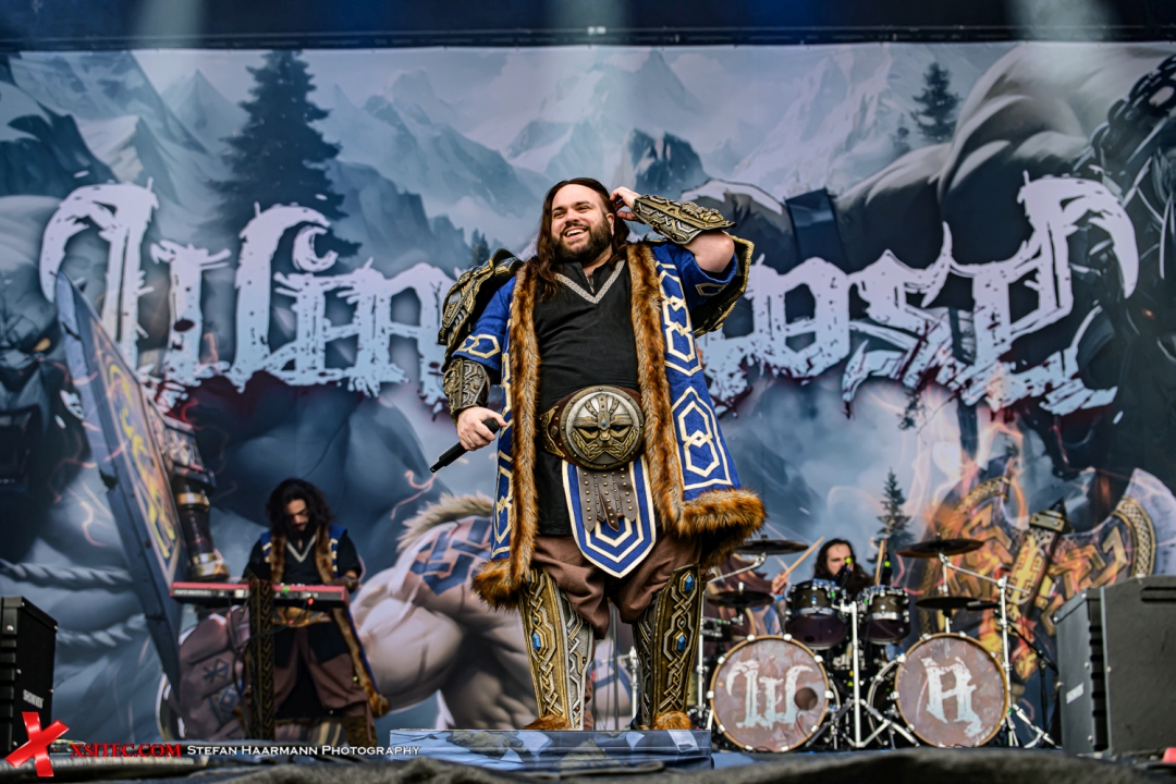 Die toskanischen Zwergen-Botschafter schaufeln mit „Diggy Diggy Hole“ und dem neuem „To Be A Dwarf“ tiefe Taktgräben ins Feld. Stilistisch kann man die Chose als Power Metal mit „Dwarf“-Branding und viel Chorgesang bezeichnen – heute besonders effektiv, weil die Crowd auf Stampfrhythmen sogar noch besser vorwärtsrutscht als auf trockenem Geläuf. Waren die Zwerge 2022 noch auf der wesentlich kleineren Wackinger Stage zu bewundern, gibt es in diesem Jahr das verdiente Upgrade und den ersten Gig der Bandgeschichte vor prallgefülltem Infield. Mehr als verdient und von WIND ROSE mit stolzgeschwellter Brust entsprechend gefeiert.