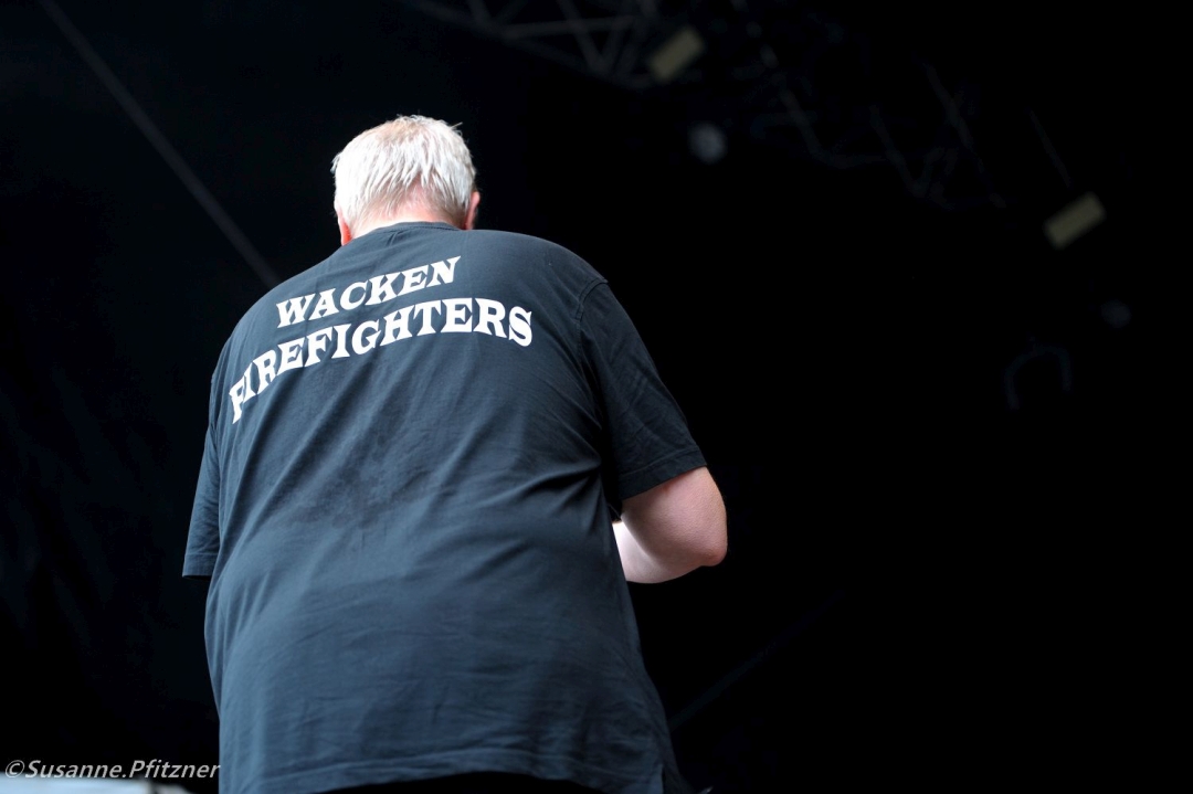 Nachdem wir unsere Spinde gesichert und die Ausrüstung verstaut haben, klart es tatsächlich kurz auf. Die Sonne blinzelt durch die Wolken, die Wetter-App verspricht bis 18 Uhr Trockenheit – und für einen Moment wirkt alles machbar. Doch Wacken wäre nicht Wacken ohne den obligatorischen Nachschlag von oben: pünktlich zum nächsten Programmpunkt gießt es wieder.WACKEN FIREFIGHTERS | WACKEN 2025-07-30