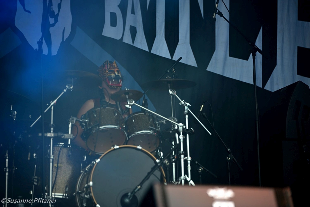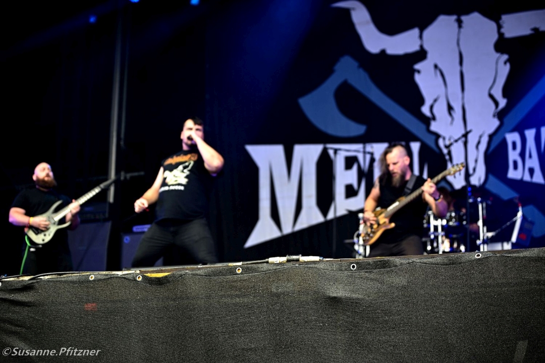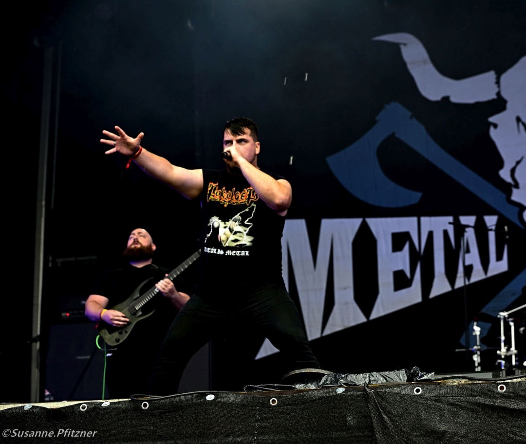 Das Wetter bleibt gnadenlos – der Boden vor den Bühnen verwandelt sich in einen zähen Morast. Um 16:15 Uhr spielen NEFALEM auf der Headbangers Stage. Die ungarische Melodic-Death-Metal-Formation hat den nationalen Metal Battle in ihrer Heimat gewonnen und liefert eine Show, die hart, präzise und melodisch zugleich ist. Für uns Fotografen wird der Weg dorthin jedoch zur Schlamm-Odyssee: Ab jetzt ist der Zugang über die Bewirtschaftungswege gesperrt, und wir müssen mit vollem Equipment durchs Infield, vorbei am Herrenurinal, bis zum gegenüberliegenden Bühnengraben-Eingang waten. Wadenhoher Matsch inklusive.