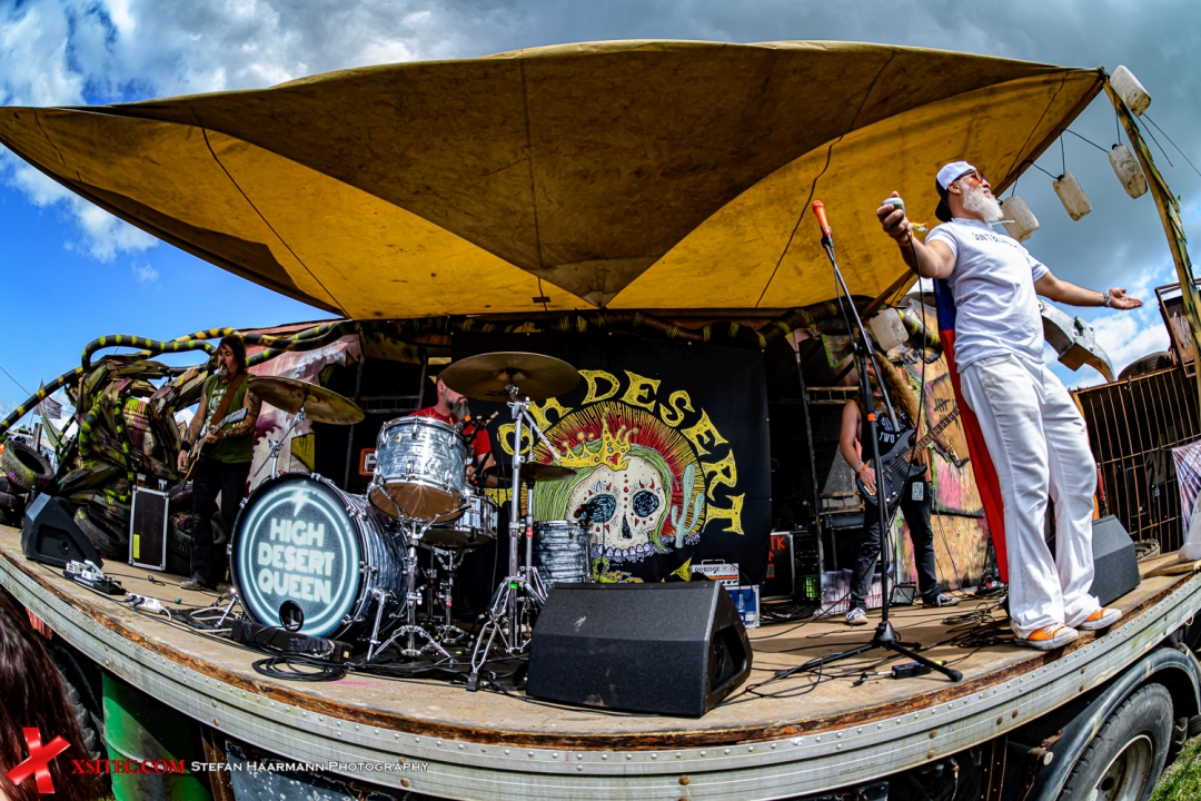 · HIGH DESERT QUEEN (13:00 Uhr) übernehmen im Anschluss und bringen texanischen Wüstenstaub nach Schleswig-Holstein. Ihr Stoner Rock groovt schwer und treibend, mit warmen Gitarrenwänden und einer gehörigen Portion Retro-Feeling. Das Publikum nickt im Takt, einige schließen die Augen und lassen sich treiben – es wirkt fast, als wäre die Wasteland Stage für zwei Stunden nach Kalifornien teleportiert worden.